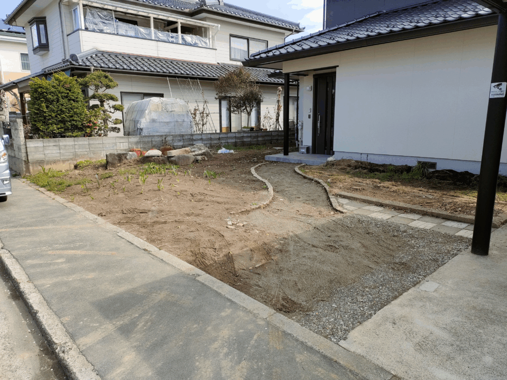 - カーポート・土間コンクリート・アプローチ周辺・人工芝・フェンス